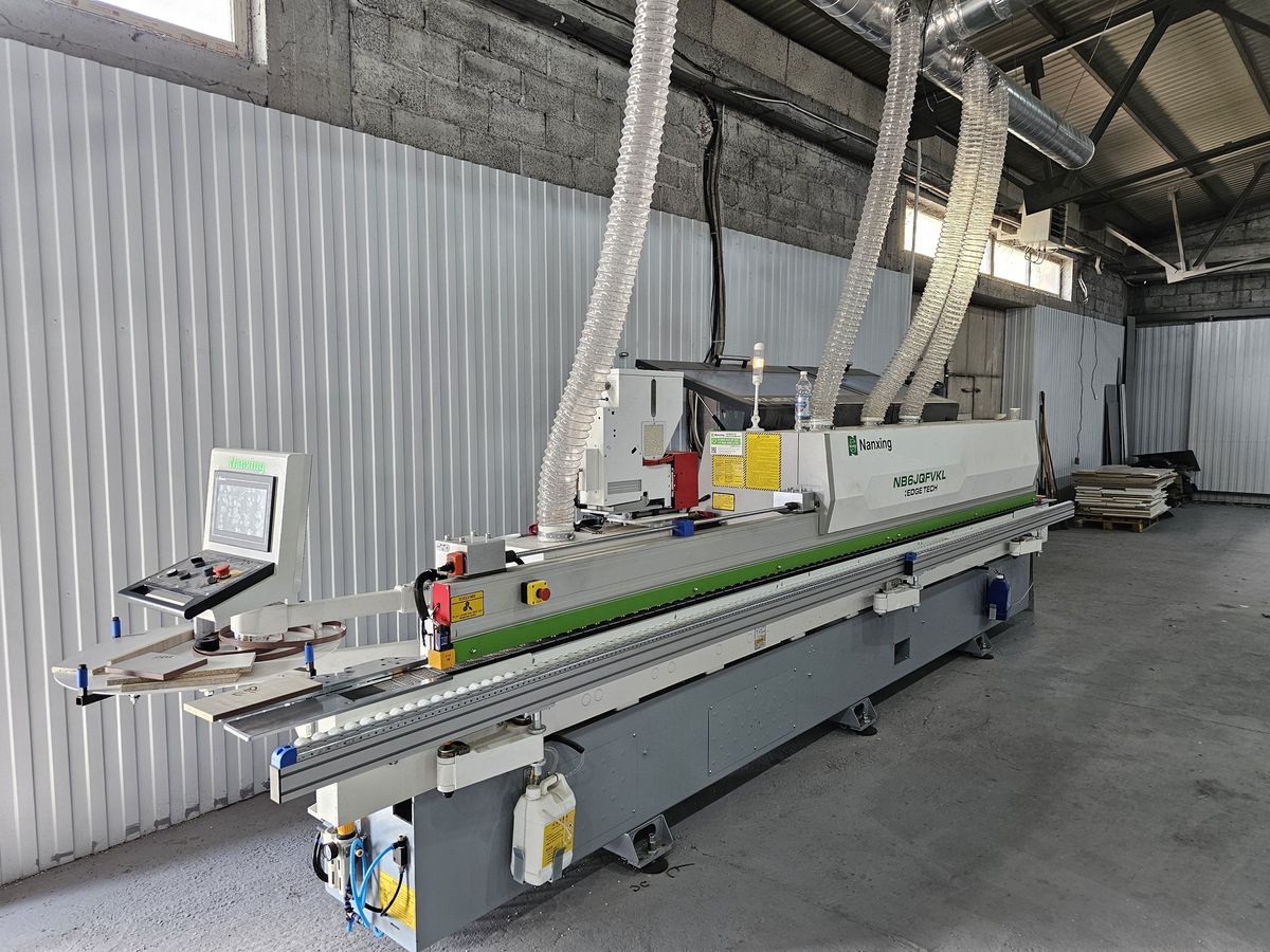 Кромкооблицовочный станок NB6JQFKL предназначен для облицовывания прямолинейных кромок плитных материалов рулонными кромками АБС, ПВХ и полосовым кромочным материалом толщиной до 3 мм.