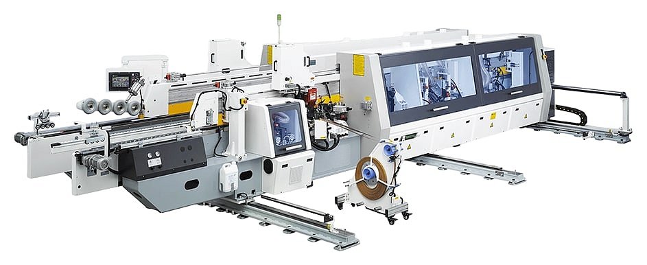Кромкооблицовочный станок NB7HS2P предназначен для облицовывания прямолинейных кромок плитных материалов рулонными кромками АБС, ПВХ и полосовым кромочным материалом толщиной до 3 мм.