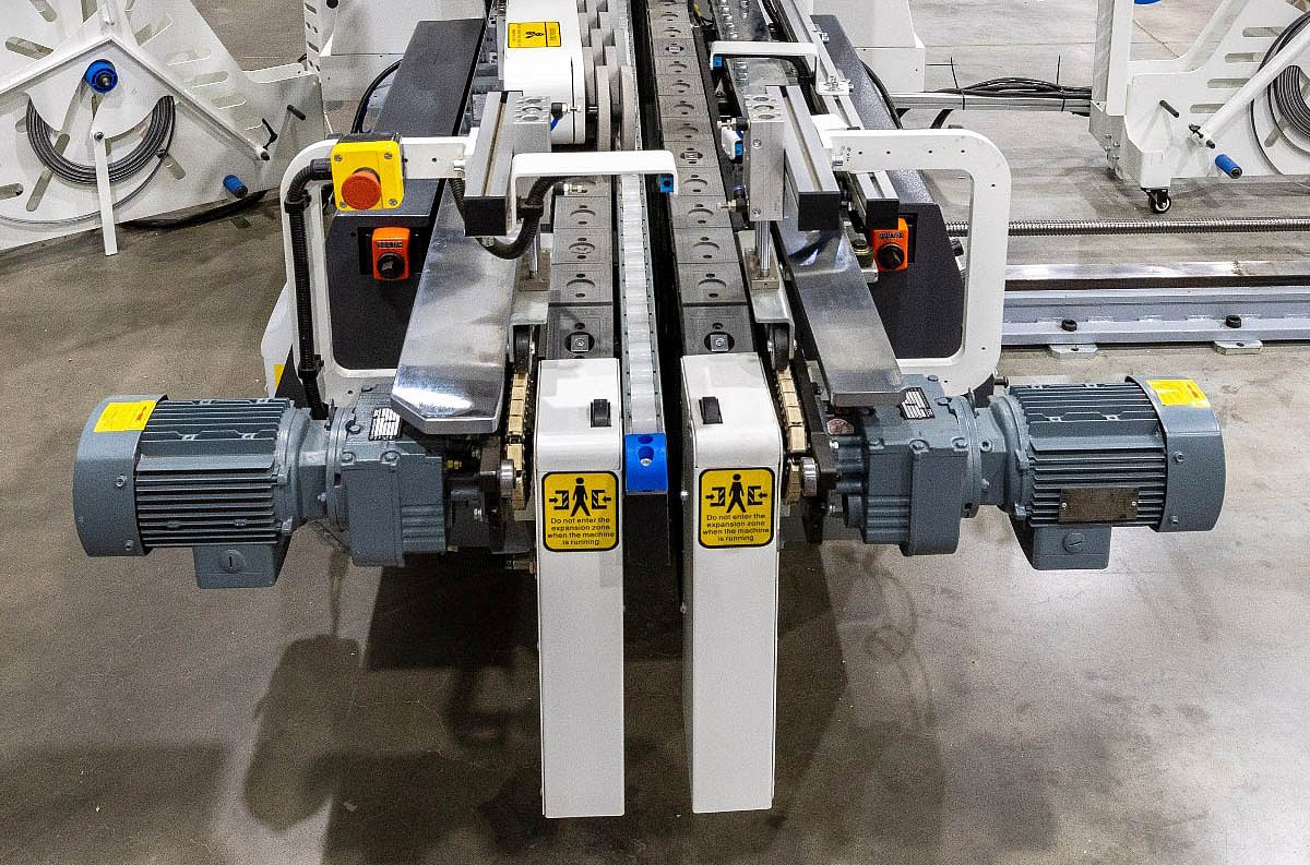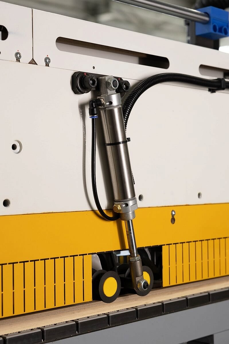 Высота раскрытия прижимной балки моторизована и управляется с Touch Screen пульта управления.