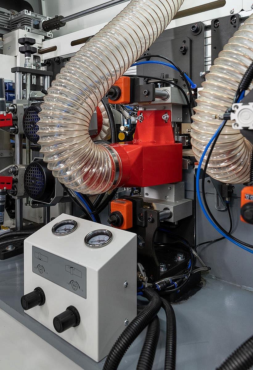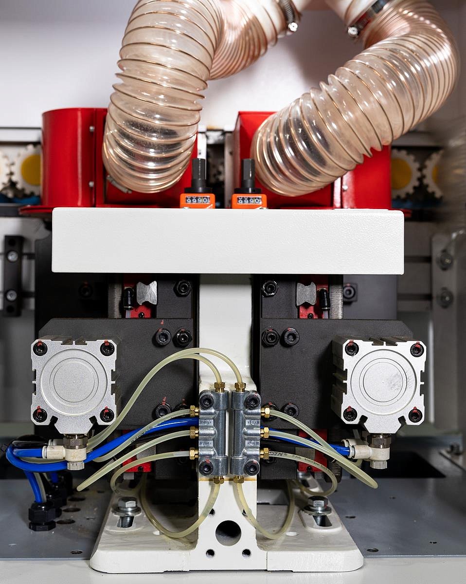 Предназначен для чернового фрезерования верхнего и нижнего свесов кромочного материала с прямыми фрезами и двигателями увеличенной мощности.