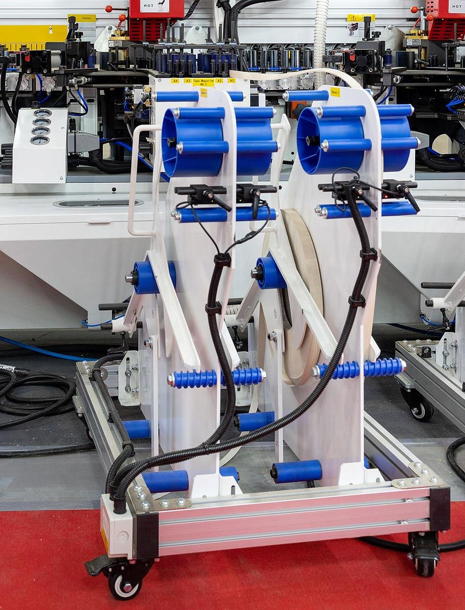 Кромкооблицовочный станок NB7HS2P-PC предназначен для облицовывания прямолинейных кромок плитных материалов рулонными кромками АБС, ПВХ и полосовым кромочным материалом толщиной до 3 мм.