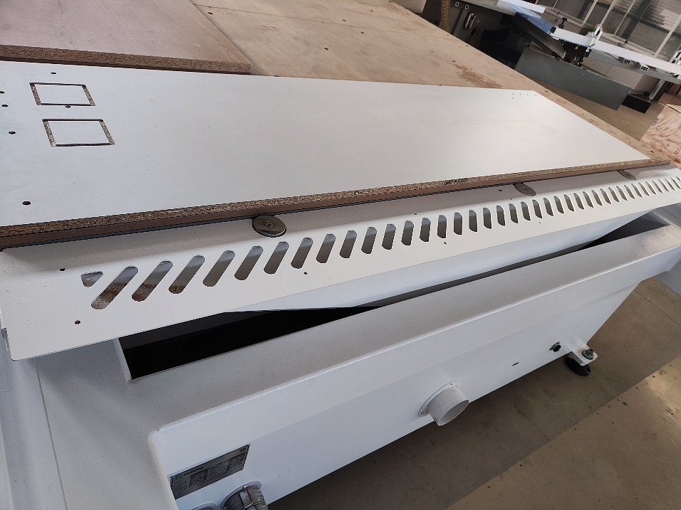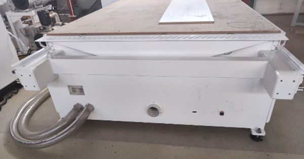 Полностью закрытый обрабатывающий блок. Кожух предотвращает вылет детали, при обработке, за пределы самого кожуха. Необходим для защиты оператора и других сотрудников, работающих рядом. Продуманная система воздуховодов с шиберами, подобранными по диаметру аспирационными рукавами, а так же форсунки для поддува в зоне фрезеровки, для эффективного пылеудаления.