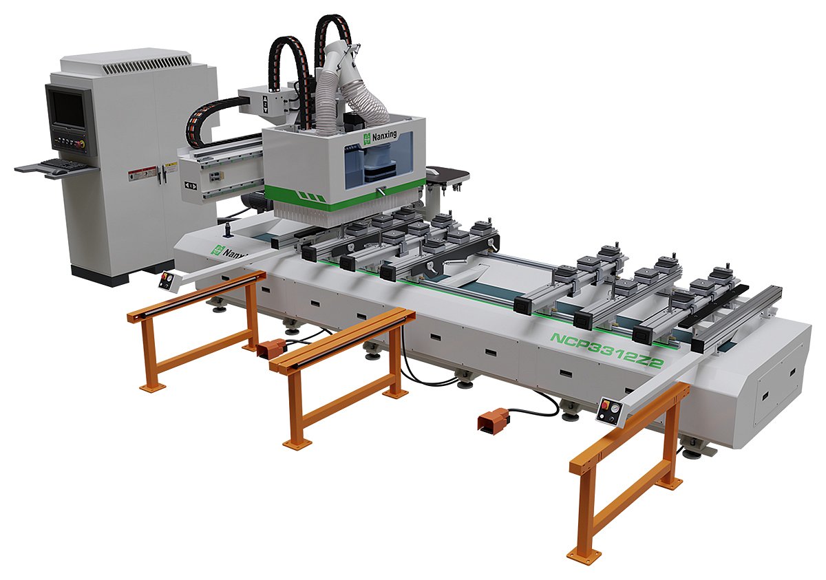 NCP3312Z2 – один из станков, подходящих для изготовления мебели по индивидуальным заказам. Сверление с 5 сторон и верхнее пазование за один проход, две рабочие зоны с попеременной обработкой повышают эффективность производства. Перемещение по осям X, Y, Z осуществляется посредством высокоточных сервомоторов. Открытый порт для подключения программного обеспечения FCC. Визуализация и отображение статуса обработки, редактирование формы, просмотр информации о заказе и многие другие функции.