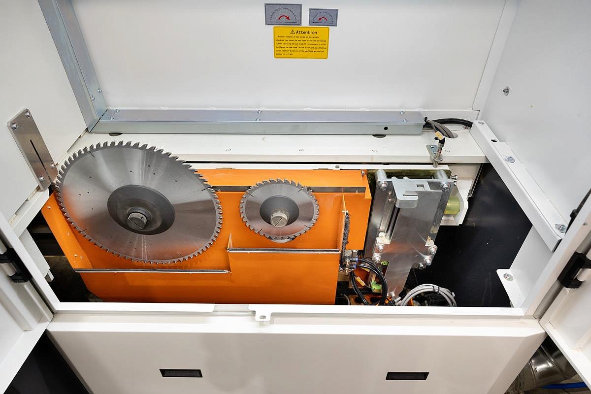 Благодаря удлиненным пазам для захватов на рабочем столе, толкатель может перемещаться за линию реза. Таким образом станок позволяет использовать всю полезную площадь листов материала.